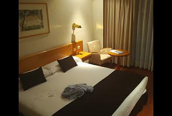 En el barrio del aeropuerto en una estrecha y arbolada calle en una calle llena de curvas, rotondas y requiebros, a un paso de las terminales y conectado con estas con un shuttle encontramos bajo la bandera de Senador el mítico y antiguo Tryp Diana. Poco parece haber cambiado desde entonces, del que fue uno de los primeros hoteles del aeródromo madrileño. El edificio, de 7 plantas con balcones da una sensación de antiguo con algunos desconchones en la fachada y una acera olvidada por el Ayuntamiento. Poco ayuda la cantidad de negocios (bares, cafeterías, tiendas, rent a car, periódicos...) que pueblan sus bajos con entradas tanto desde la calle como desde el interior de la recepción y que llenan esta de ruidos, voces y jolgorio.