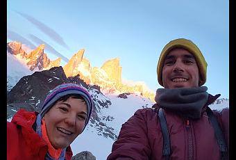 Éramos unos cuantos saliendo del Campamento Poincenot abrigados como esquimales y con los frontales encendidos camino a la base del Cerro Chaltén.