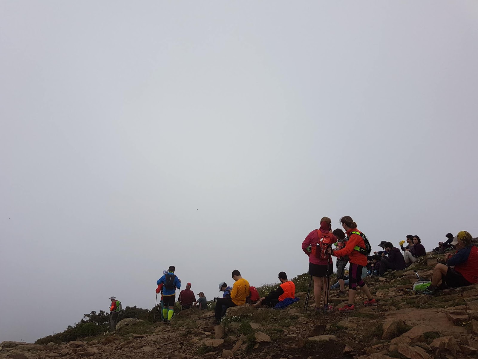 Ahí en la cima, al lado de la estación meteorológica que hizo famoso al Turó, coincidimos con los participantes de la 43 edición de la marcha excursionista de resistencia Travessa del Montseny, 48 km de recorrido en los que se enlazan las cimas del macizo desde Aiguafreda hasta Gualba. Un buen tute.