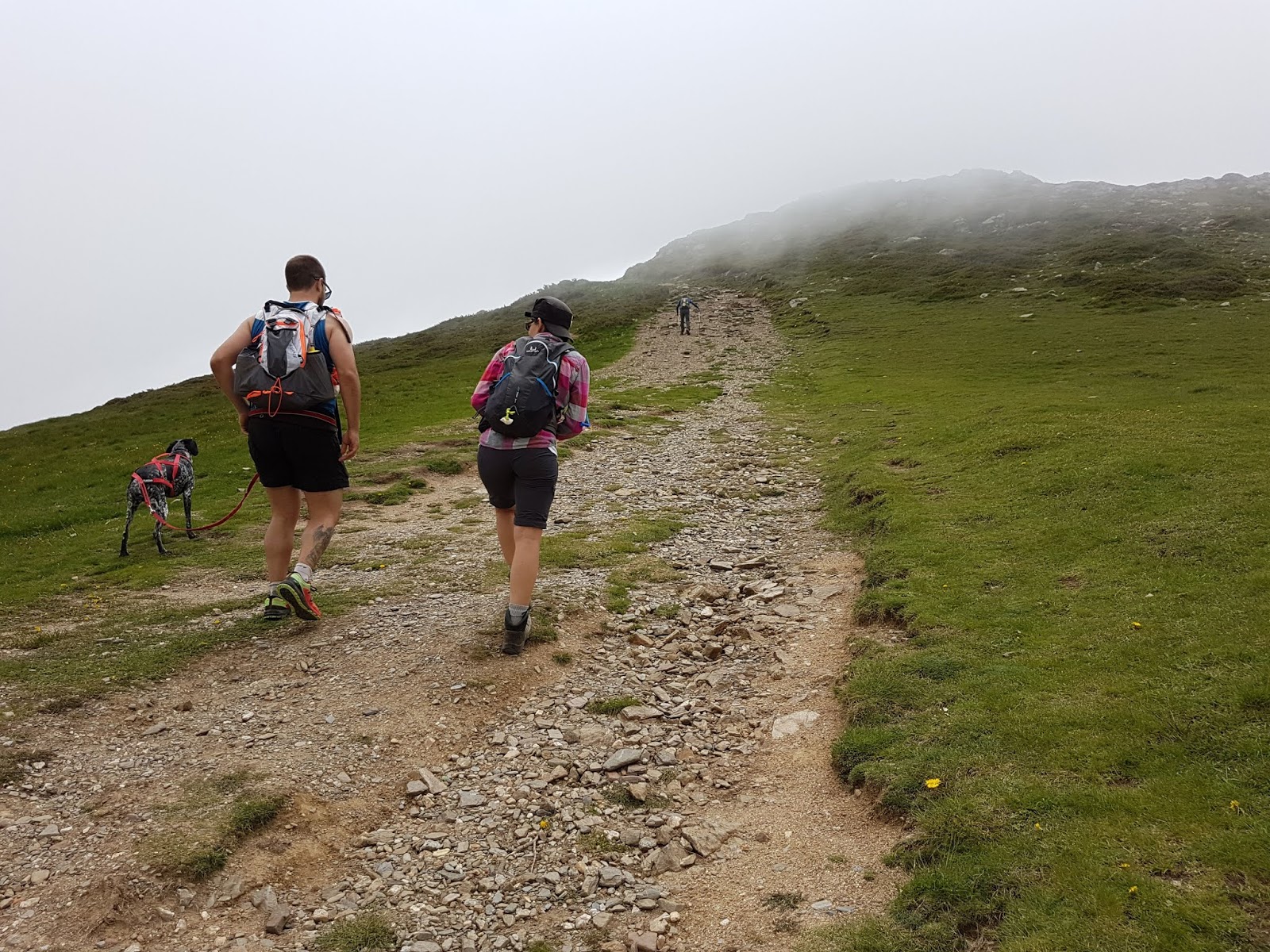 Al acabar los bocadillos, rápido porque comer con Drea mirándonos y conspirando para robarnos el pan era muy inquietante, decidimos llegar hasta la cima de Les Agudes que estaba bien cerca. Tuvimos niebla así que vimos poco el paisaje pero la zona estaba muy bien.Durante el camino de vuelta las nubes desaparecieron y tuvimos un buen sol que nos acompañó hasta que entramos en el bosque.