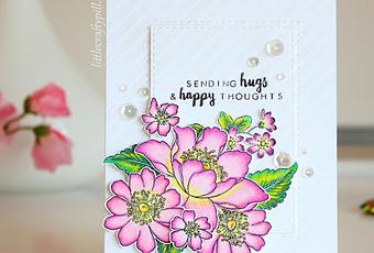 Me llevé unas cuantas flores para colorear mientras estaba de viaje y decidí convertirlas en una tarjeta cuando volví a casa. ¡Espero que os guste el resultado! :)