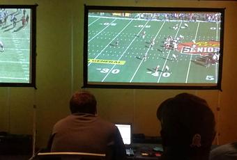 Una vez terminada la práctica, me dispuse a comer algo para después irme a dar una vuelta por la sala de video antes de que comenzaran las pláticas de The Scouting Academy. A pesar de que apenas había pasado una hora del final de las prácticas, la sala, que consiste en ocho pantallas grandes controladas desde una computadora y utilizando el software de XOS Digital, estaba llena de scouts viendo distintos momentos de la práctica. Una de las reglas no escritas es que aquél que llega primero es el encargado del “clicker”, por lo que los demás deben acoplarse a lo que el primer scout está viendo y sacar de ahí las notas.