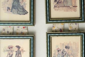 Como nos había parecido original la forma inicial de prender las ilustraciones, buscamos un soporte que, a nuestro juicio, casara mejor con el nuevo look de las mismas. Va a ser verdad esa frase que dice que, del cerdo se aprovechan hasta los andares... ¡Pues nosotras hasta su envoltorio! Esta bolsa de arpillera, ya deshecha, y que guardábamos para un "por si", resultó tener la anchura y la longitud que buscábamos.