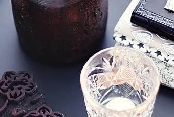 Un pequeño espacio creado en la mesa de centro, en el que bastan unas libretas decoradas al más puro estilo marroquí, unos bolígrafos y un precioso sello para estampar con un dibujo floreado. El toque de ligereza lo aporta el florero rústico decorado con una ramita de cerezo todavía florecida... Sensaciones... sensaciones y más sensaciones.