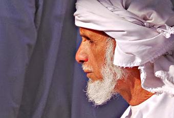 La mayoría de hombres omanís visten la disdasha (traje) y la kimma para cubrirse la cabeza