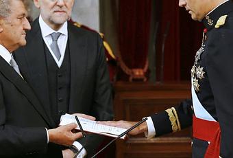 19 de junio de 2014: Jesús Posada, Presidente del Congreso, toma juramento a Su Majestad Felipe VI, ante la mirada de Mariano Rajoy, Presidente del Gobierno.