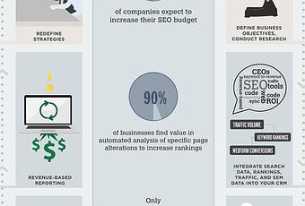 Esta infografía muestra cómo el uso de herramientas de automatización puede ayudarnos a realizar las tareas que consumen mucho tiempo durante el SEO, ayudándonos así a disponer de tiempo para centrarnos en la estrategia y el contenido.