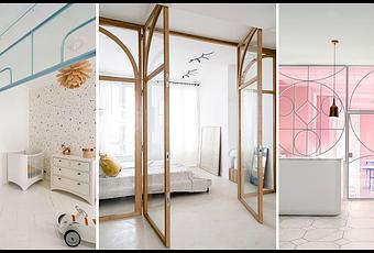 Otro gran recurso son, por ejemplo, los panelados con puertas correderas dobles integradas. Cuando las puertas queden abiertas e integradas al diseño del panel, las estancias resultarán comunicadas entre sí y el espacio mucho más amplio. Como sabemos que todo se diseña, podemos desarrollar dibujos geométricos o artístico, o emplear alguna paleta de color más atrevida, para obtener un toque de diseño y original en la arquitectura de interiores.
