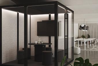 Pod de trabajo minimalista que te permite tomarte un respiro mientras sigues en medio del caos