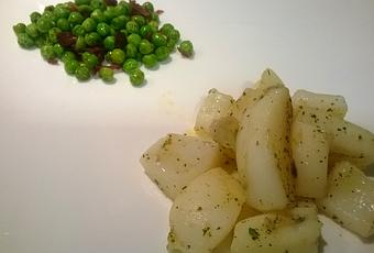 Ingredientes100g GuisantesJamón IbéricoAjoSepiaAderezo de LimónPerejil Y Aceite de Oliva
