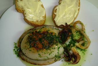 Ingredientes:-4 sepias-1 diente de ajo-Sal a gusto-Perejil-Aceite de Maíz-Vinagre (1/2 vaso de vino de Vinagre)-Pan tostado-Mayonesa (a gusto de cada uno)Poner a calentar una sartén, añadir una cucharada sopera de la "picadita" anterior y las sepias.Poner el vinagre y cocer las sepias a fuego suave, ir dándole vueltas.El vinagre tiene que ir evaporándose poco a poco. Cuando se haya evaporado subir el fuego paraque se doren como en la foto.Servir con una cucharada de la "picadita" por encima y dos tostadas con mayonesa.