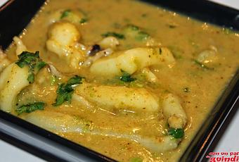 4.- Añado la mezcla de almendra al guiso, mezclando bien. Cuando empiece a hervir retiro del fuego.5.- Sirvo caliente con perejil picado y mucho pan para la salsa.