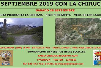 El sábado 28 de septiembre tenemos ruta en la vecina provincia de León en la localidad de Los Carmenes, con el ascenso al Pico Piedrafita y a las lagunas del valle.En próximos días colgaremos mas información.