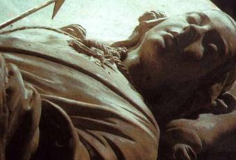 Santa Cristina, virgen y mártir (24 de julio): La niña mártir de Bolsena está enterrada, valga la redundancia, en Bolsena (Italia). Concretamente en la Basílica de Santa Cristina, que fue construida sobre el lóculo original donde fue depositado y venerado su cuerpo después del martirio. En cierto momento su cuerpo fue desenterrado y llevado a Palermo. Luego fue devuelta, pero algunos restos se quedaron allí, en una esplendorosa tumba en el Duomo de Palermo. (En la imagen, figura yacente de la Santa, obra de Benedetto Buglioni, que cubre su sepulcro en Bolsena).