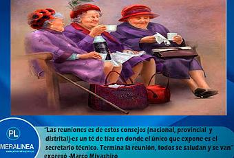 El también ex general de la Policía Nacional en situación de retiro – expresó que las autoridades que integran estos consejos-no llevan ningún tipo de propuestas y sus reuniones terminan convirtiéndose en simples tertulias de amigos con buenas intenciones.“Las reuniones es de estos consejos (nacional, provincial y distrital)-es un té de tías en donde el único que expone es el secretario técnico. Termina la reunión, todos se saludan y se van”, manifestó- Miyashiro desde el Congreso de la República – tras revelar que no se tratan los asuntos ‘temáticamente’.“Los gobiernos regionales y locales no solamente deben llevar las denuncias, porque nunca llevan nada. Van simplemente a sentarse, a tomar su cafecito, sus galletas, mismo té de tías”, agregó- Marco Miyashiro.