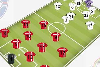 Serbia: 1 Vladimir Stojkovic; 6 Branislav Ivanovic, 13 Aleksandar Lukovic, 5 Nemanja Vidic, 3 Aleksandar Kolarov; 17 Milos Krasic, 11 Nenad Milijas, 10 Dejan Stankovic, 14 Milan Jovanovic; 9 Marko Pantelic, 15 Nikola Zigic. DT Radomir Antic