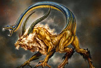 La quimera es un ser monstruoso de origen oscuro, híbrido entre un león, un macho cabrío y un dragón.