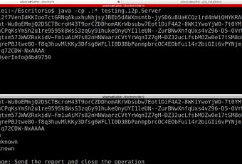 Aunque ambos programas se ejecutan en la misma máquina y sobre la misma instancia de I2P, el funcionamiento será el mismo en instancias y máquinas separadas.