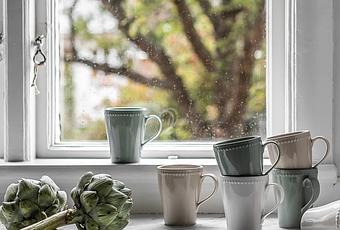 Tazas, platos y boles están disponibles en varios colores, blanco, gris, beige y verde claro y justo durante estos días están todas las piezas rebajadas.