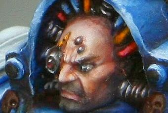 Serpentarium: Tigurius' face. Small tutorial with lots of hints ...: Impresionante tutorial paso a paso de la pintura del rostro de Tigurius, en este caso es un Bibliotecario del capítulo Aurora de los Marines Espaciales de Warhammer 40000 de una también espectacular conversión.
