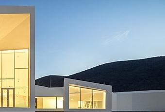 Estas áreas con actividades dinámicas se imponen sobre la ladera como entidades blancas de volumetrías complejas, extendiéndose en diferentes niveles sobre el paisaje. Una serie de terrazas, rampas y escaleras exteriores establecen el vínculo entre las partes, que se hacen cubiertas cuando el programa lo requiere.