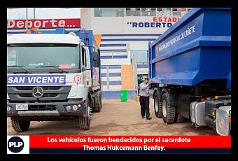 Luego de tener toda la documentación en regla (tarjeta de propiedad, soat y placa), el vehículo fue bendecido por el sacerdote Thomas Hukcemann Benfey, en acto presidido por el alcalde CPC Segundo Díaz De la Cruz, quien indicó que las dos tolvas, con que cuenta el vehículo, serán ubicadas en lugares estratégicos en las zonas donde funcionan los mercados de la capital provincial.