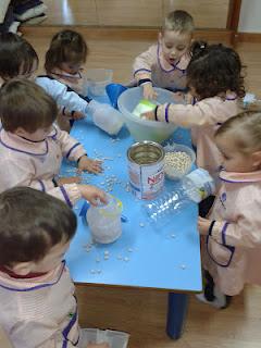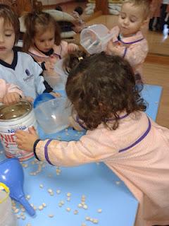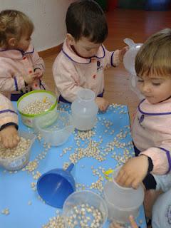 Unos garbanzos, recipientes de diferentes tamaños y varios embudos es todo lo que necesitas para llevar a cabo una sesión de psicomotricidad tan divertida y práctica como esta. Está dirigida a alumnos de 1 a 2 años y los principales objetivos a trabajar son la motricidad fina (trabajo de la pinza digital cogiendo objetos pequeños como los garbanzos), refuerzo del concepto lleno/vacío y en especial un trabajo a nivel simbólico que ayuda a comprender el control de esfínteres, aspecto muy práctico para trabajar a estas edades.