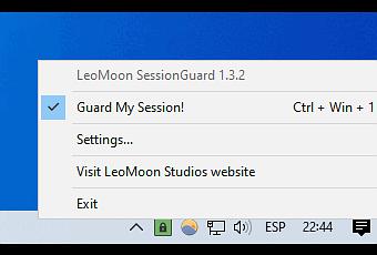 Ahora, diríjase a la bandeja del sistema y de clic derecho sobre LeoMoon SessionGuard, y elija la opción Settings.