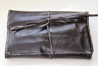 Se trata de un conjunto de 24 brochas para rostro, ojos y labios. Viene en un estuche de piel sintética negro con los pespuntes en blanco como veis en la foto anterior. Desplegado es tal que así: