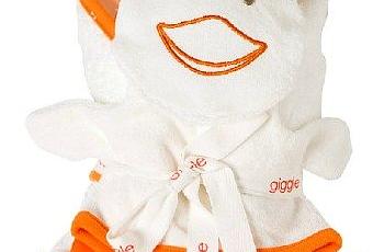 El set incluye una toalla y un guante de baño para enjabonar al pequeño cuando se lo bañe en la casa, todo con un diseño de simpático patito en blanco y naranja, tan personalizado que hasta tiene su pico, ojitos y patas. Los padres podrán desarrollar toda una historia en base a éste personaje que ayudará a los niños a familiarizarse aún más con la rutina del baño.