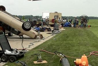 Hoy os traemos unas fotografías del set de rodaje en el que se puede ver los destrozos causados por un tornado en Smallville.