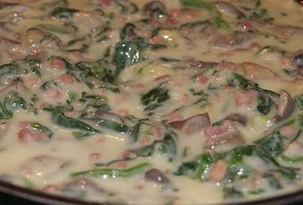 Con esta receta puedes hacer una guarnición ó plato único; es muy suave y sana.Ingredientes:2 calabacino mediano1 bandeja de setas2 dientes de ajos400 gr de espinacasSalAceite de oliva virgen1 paquete de 90 gramos de taquitos de jamónPara la bechamel:1 cuchara de harina, leche, aceite, nuez moscada, pimienta, sal, 1 cuchara pequeña de mantequilla ,1/2 cebolla(si quieres puedes hacerla de sobre)Aceite de oliva virgen