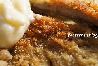 Para qué se haga bien las setas, yo las meto unos tres minutos en el microondas para que se deshidraten. Ponemos a calentar una sartén con un poco de aceite y mientras empanamos las setas salándolas un poco. Pasamos por harina, huevo y pan. Las freímos y doramos y vamos colocando en un plato con papel de cocina para que escurra el aceite. Emplatamos y ponemos con un poco de mahonesa y ali olí.