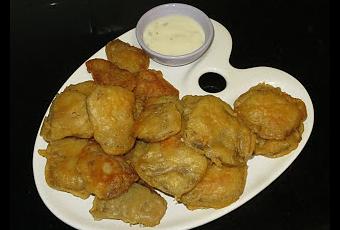 Luego vamos bañando las setas en esta masa, escurrimos y las ponemos a freír en aceite bien caliente. Sacamos, retiramos el exceso de aceite y ya están listas para degustar. En este caso, como quería que mi receta fuera vegana la he acompañado con una rica veganesa, pero podéis utilizar la salsa que más os guste.