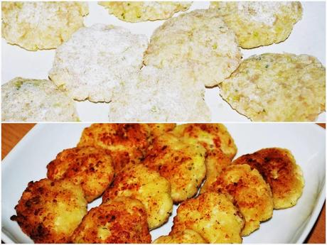 Formamos bolitas. Pasamos por un poco de harina y las aplastamos. Freímos.