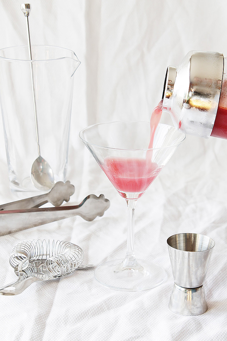 A falta de coctelera podéis usar un vaso alto lleno de cubitos y remover todos los ingredientes con una cuchara alta. A la hora de servir con un colador evitaremos que los cubitos se caigan en la copa.