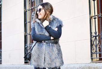 chaleco de pelo/ fur coat: Sfera, pantalones/ pants: Pull & Bear, zapatos/ shoes: Asos, bolso/ sac: Asos,cinturón/ belt, anillo/ ring, pulsera/ bracelet: Sfera Últimamente he comprado varias cositas en Sfera, sobre todo complementos y este chaleco de pelos que aunque puedaparecer un chaleco cualquiera, no lo es, porque el pelito es súper suave, muy blandito, agradable y no pesa nada. Una combinación que no falla es con negro, aunque son posibles muchas otras: con vaqueros, tonos marrones, verdes, zapato cómodo... seguroque el frío de Madrid me inspira bastante para ponérmelo mucho! El pantalón de cuero negro lo tenía sin estrenar yla verdad es que me queda un poco grande, independientemente de que el corte sea anchito de pierna.Sinceramente, me gustan más pegaditos. ¿Qué os parece este look? ¿Os gusta Sfera? Besos ;)