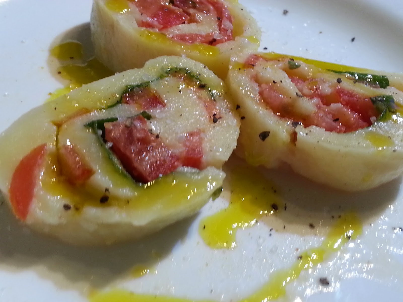 INGREDIENTESMozzarella c/n, yo use 300 grs. Tomate, 1 y medio o la cantidad que gustenHojas de albahaca, a gusto SalPimientaAceite de olivaOtro relleno posible es con un rico prosciuto y ruculaCortar la mozzarella en pedacitos