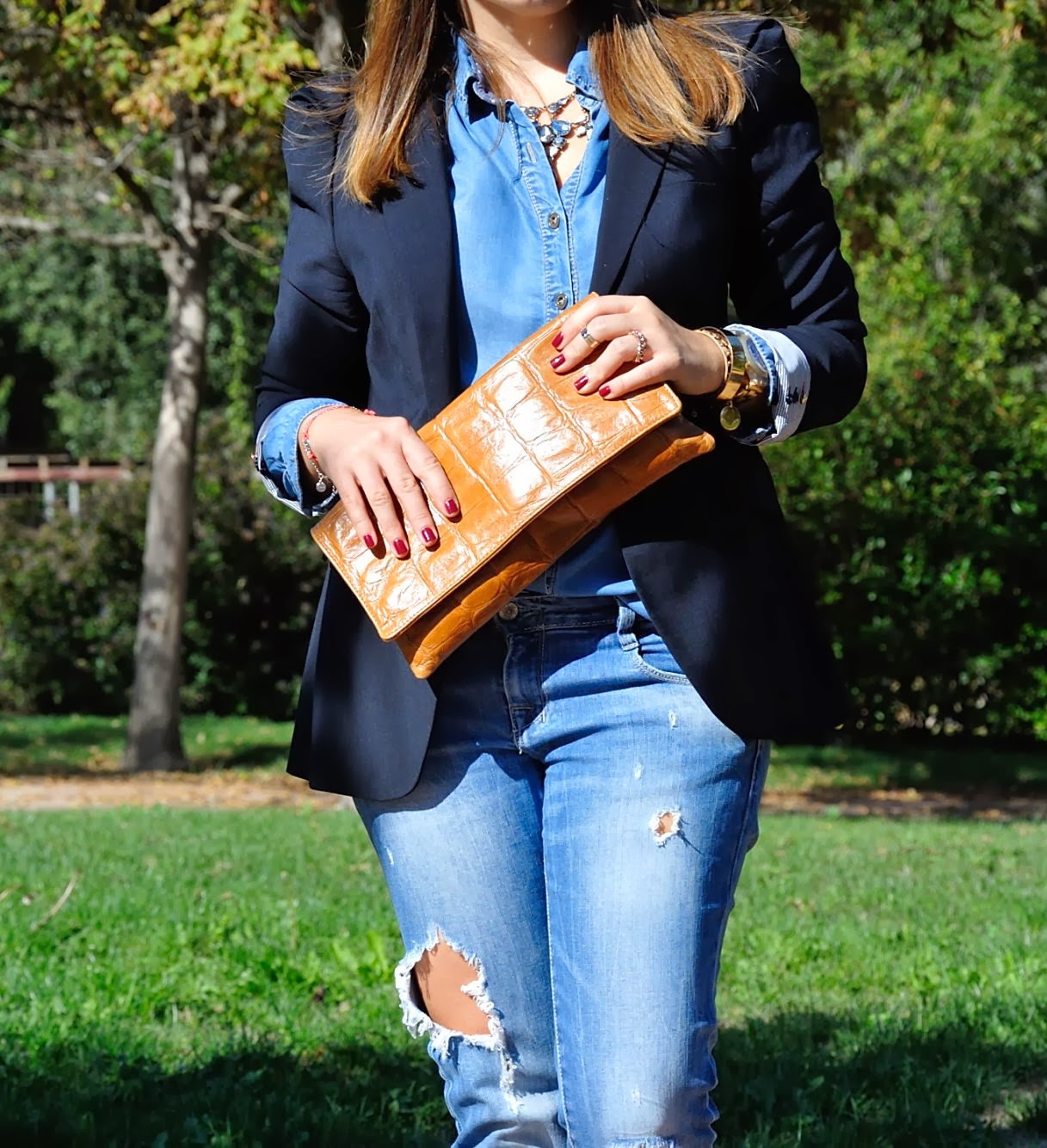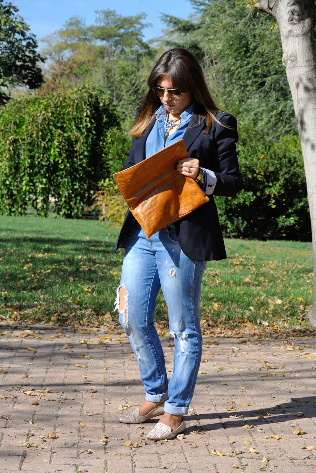 One of the combinations that I'm enjoying this season is to combine different types of denim and fabrics. In this case I played with different kinds of blue taking advantage of the last days of sunshine and good weather.I love the contrasts in this case as informal jeans and so shattered with the seriousness of the blazer.