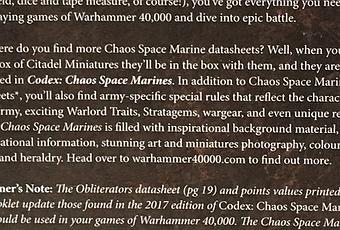 El caso es que, en la parte de los MEC (Demonkin) hay dos hojas de datos que no coinciden con sus equivalentes del codex MEC, la de los Arrasadores (Obliterators) y la de la escuadra de Marines del Caos.