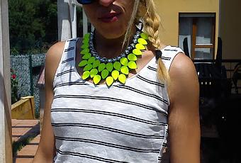 Hola cielotes!!! Ya estoy porfín por aquí con una nueva entrada, intentaré hacer entradas casi diarias, pero os sigo por las rrss, aunque no postee. Os dejo con un look super fresco, en blanco y negro, con shorts de abalorios y flecos, sandalias de cuña negras con tiras y tachas, top navy, y collar babero de Princess en amarillo flúor (me apasionan!!), que consiguen dar un toque completamente diferente a la prenda más simple, me encanta que los accesorios(bolsos, collares, pulseras, calzado...) sean los que "creen" el outfit. Como ya sabéis, los accesorios, son, aveces, las claves y protagonistas de nuestros looks!! Y este collar, consigue ese efecto! Asíque, a tirar de accesorios, siempre bien combinados, ya que son la clave de un look ideal!! En este look, os enseño dos versiones, top normal, y dando un nudo, conseguimos un estilo cropped top, tan tendencia este verano, qué os parece?¿ Os gusta el resultado tanto como a mí? Besazos!! Y muchas gracias por vuestras visitas y comentarios!! Os dejo con más fotos!