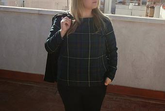 Para la blusa he repetido este patrón, me gusta porque es sencillo y se hace enseguida! Me gustan mucho la telas de cuadros tipo "uniforme escolar" o "tartan", otra manera de llamar a estos cuadros. Lo malo es que se deshilacha muchísimo y he tenido que reforzar bien las costuras.