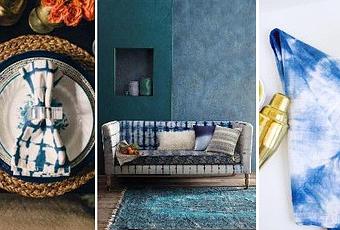 Teñir telas mediante la técnica Shibori, es espontáneo y muy cambiante. Los estampados de este estilo decoran la casa por completo. El estampado Shibori está muy de moda, muchas firmas de decoración lo han incluido en sus catálogos: Cojines, fundas para sofás, juegos de sábanas y nórdicos, manteles y cortinas... cualquier textil de fibra natural es adecuado para ser decorado.