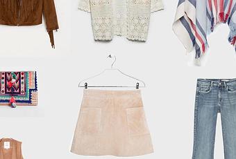 Cardigan de Crochet (Stradivarius)Poncho (Stradivarius)Bolso etnico (Oysho)Falda de ante (Mango)Jeans de Campana (Zara)Chaleco de flecos (Bershka)Botines de Serraje (Stradivarius)Brazalete (Mango)