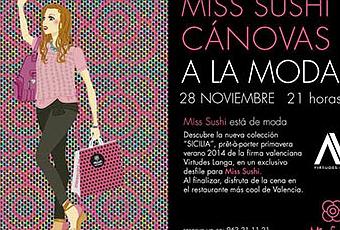 Continuamos mañana a las 21h en el restaurante Miss Sushi de la pz. Cánovas donde habrá un desfile de la diseñadora Virtudes Langa presentando su colección SICILIA para la temporada SS14. Una vez terminado el desfile se procederá a la cena. Para hacer la reserva basta llamar al 963 21 11 21 o enviar un e-mail a [email protected].