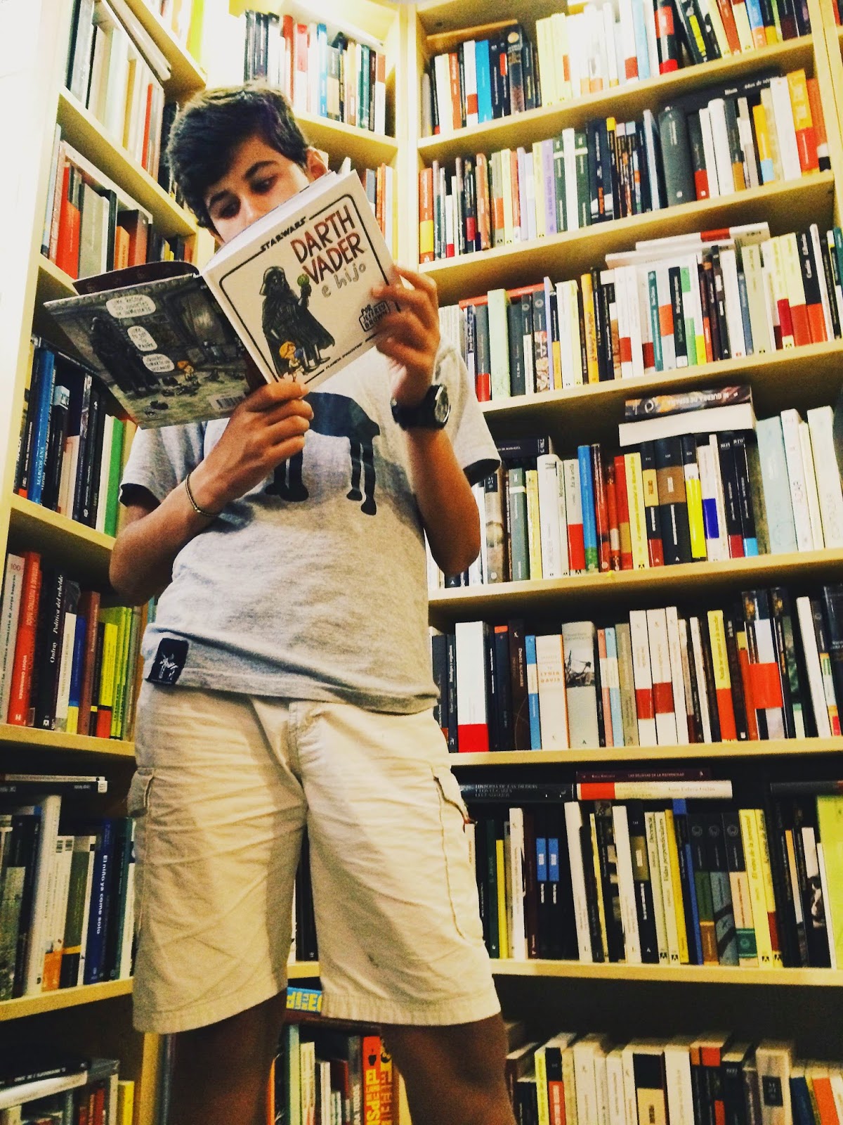 Si estuviéramos tomando un café, me gustaría contaros que adoro el olor de las librerías, y os diría que mis hijos han heredado ese gusto. Nos permite entrar en una librería y estar tranquilamente ojeando libros uno detrás de otro. Nos gusta dedicar tiempo a decidir cual será nuestro último libro.