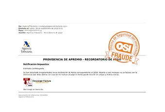La estafa comienza partir de recibir un email que suplanta a la Agencia Tributaria, mediante el cual, si una victima incauta descarga el fichero adjunto, los estafadores podrán acceder a sus cuentas bancarias. Ya que este tipo de ficheros suele venir acompañado de virus informáticos, que pueden desde robar datos, hasta hacerse con el control de nuestro ordenador.