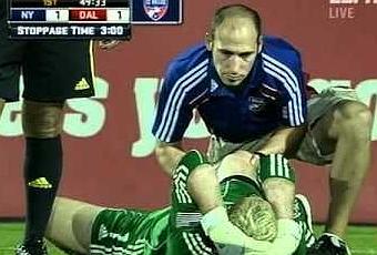 Para festejar un gol de su flamante equipo, los Red Bulls, Henry fue a patear con fuerza la pelota que tenía cerca. Además de impactar a la redonda, también le dio al arquero de Dallas Kevin Hartman, quien también quiso tocar el balón en el mismo instante. El bueno de Hartman se llevó una lesión en los ligamentos de la rodilla derecha.