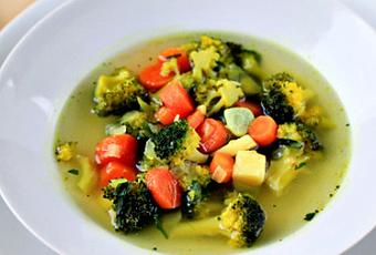 Un sabroso caldo de verduras. Este platillo permite obtener los nutrientes y líquidos que puede perder el cuerpo por una alta intoxicación, mientras se logra recuperar la energía; y para su consumo es mejor cuando está recién hecho.