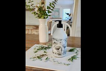 Estos días se me ocurrió transformar esta botellita de menor tamaño y una ilustración botánica divina, en dispenser para el jabón líquido del toilette. Me encanta como quedó ♡
